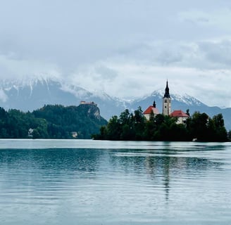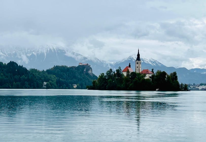 Jezioro Bled – Trochę dalej od Osp. Symbol Słowenii, które warto zobaczyć, jeśli masz dzień lub dwa więcej na zwiedzanie.Znajduje się około 200 km od Ospu. Należy koniecznie spróbować Kremną Rezine (słodka wizytówka Bledu):